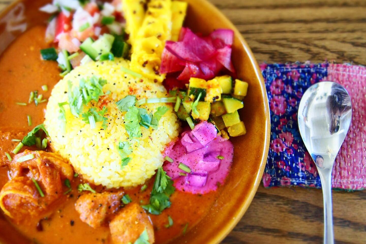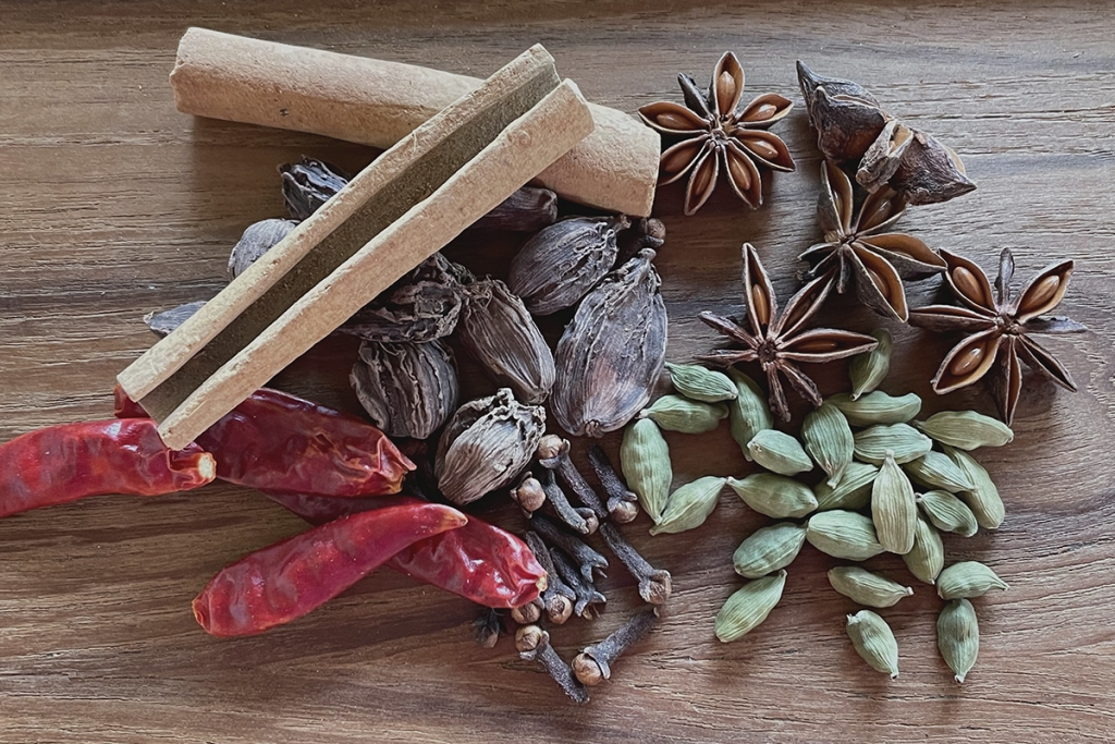 スパイスを使ったインド料理などのレッスン。基本はメイン料理、副菜数種類、ドリンクを参加者で作り、試食を兼ねたランチタイムを含めてトータル3時間ほど。